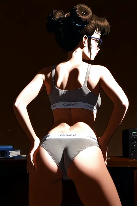 Yuri Sato Otaku Outfit: Sato, glasses, long hair, brown hair, brown eyes, overalls, pink shirt, retro artstyle, 1990s (style)