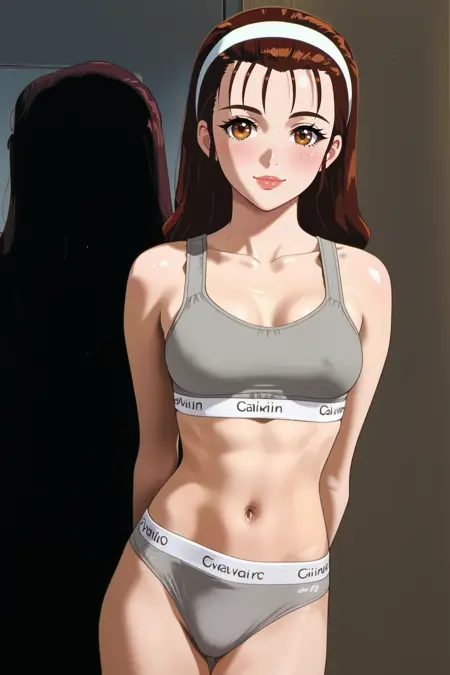Misuzu Fukuhara: Fukuhara, hairband, long hair, brown hair, brown eyes, apron, turtleneck sweater, retro artstyle, 1990s (style)