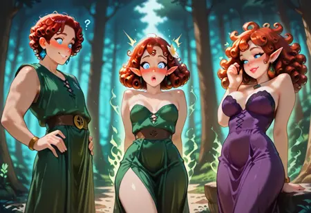 Generates M2F/TSF cartoon sequences. This tends to produce 3-character sequences at typical landscape 3:2 resolution (1216x832) but it will produce longer sequences at 16:9 ratio (1344x768) or ultra widescreen (1536x640). It can do very nice 2-character ("before after") shots too, and these are about all you can get in square or portrait resolutions. With wide and ultra wide pics it will go up to 5-6 characters with good sequence consistency.