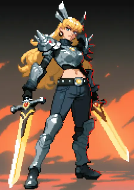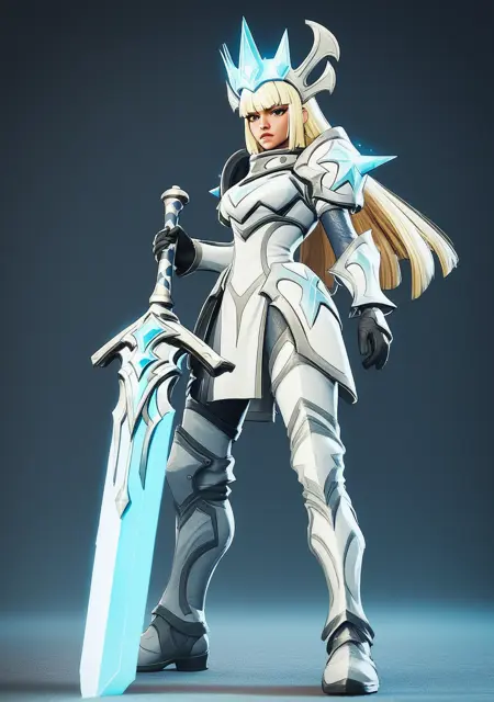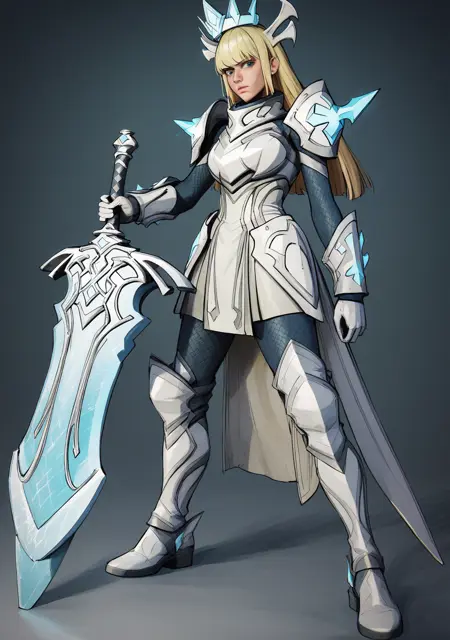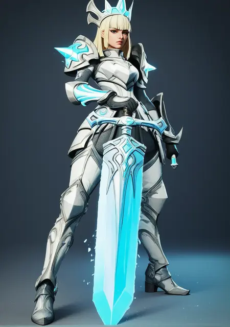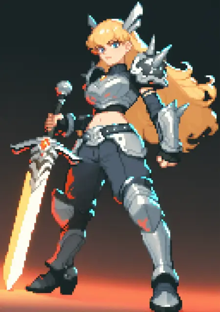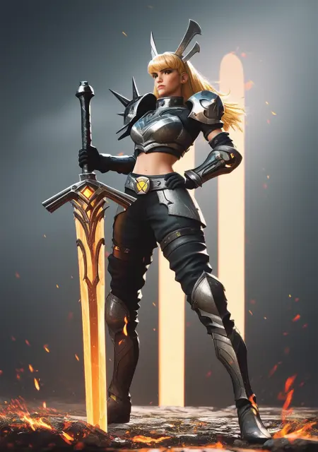 提示词:magik, xmen, 金发,手持武器,盔甲,持剑,露腹,基础盔甲