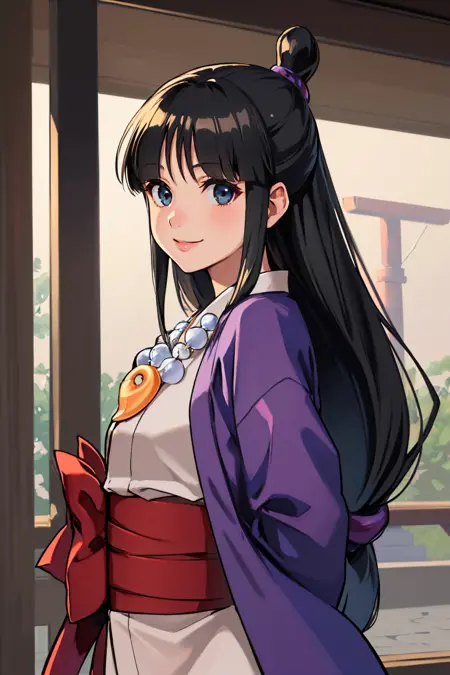 Classic: maya fey, half updo, hair ornament, japanese clothes, kimono, sash, necklace, magatama