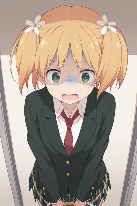 yuu, 1girl, solo, twintails, hair ornament, green eyes, necktie, school uniform, blazer/no jacket