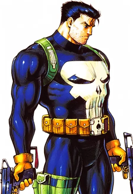 Capcomのアーケードゲーム『ザ・パンイッシャー』のキャラクター概念アートを元に学習されました。