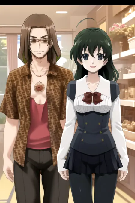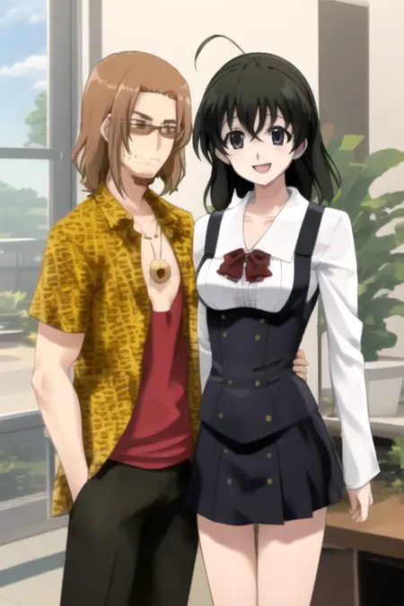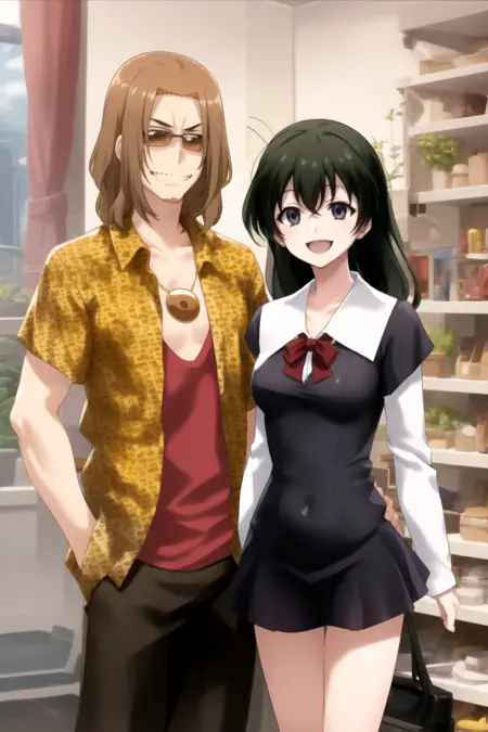 TomaruSekai, a man and a woman, hetero, standing, smile, cowboy shot