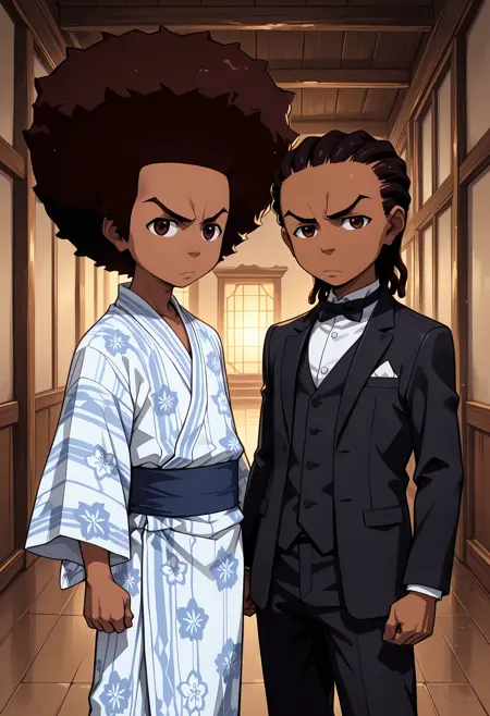 _The Boondocks_의 프리먼 형제. 트리거는 [hueyf] 및 [rileyf]입니다.