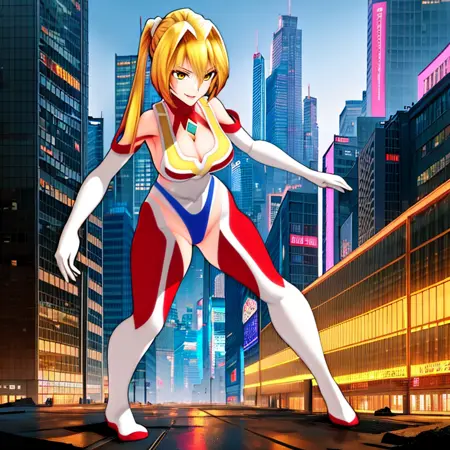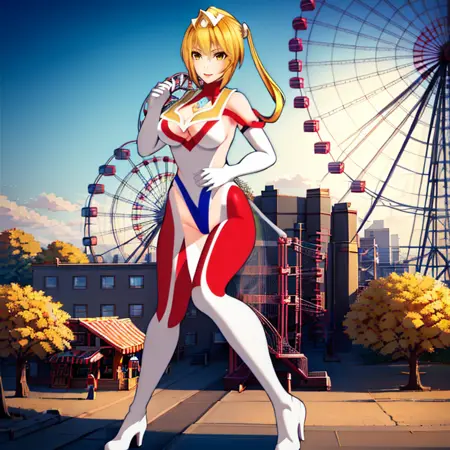 우ltraman Dyna의 초거대 여전사 버전, 통칭 Lora를 생성하세요. 거대한 존재의 분위기를 주기 위해 배경은 미니어처처럼 설계되었습니다. 이에는 도시, 놀이공원, 눈 덮인 산, 수중, 우주, 폭포, 건설 현장이 포함됩니다.