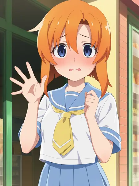 | 训练词汇 | renaIllustrious, short hair, bangs, blue eyes, hair between eyes, medium hair, orange hair已复制! skirt, shirt, school uniform, white shirt, short sleeves, pleated skirt, serafuku, sailor collar, blue skirt, neckerchief, blue sailor collar, yellow neckerchief已复制! white dress, thighhighs, black thighhighs, hat, puffy short sleeves, dress, bow, short sleeves, bowtie, wristband, blue wristband, white headwear, purple bow, back bow, purple bowtie 已复制! |