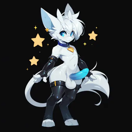 I've trained this model on my own drawn images with specific edits (like removing additional characters from pictures I already published in the past). The e621 tags contains pictures from other artists that have drawn my OC over the years but this model is trained exclusively on my own drawings