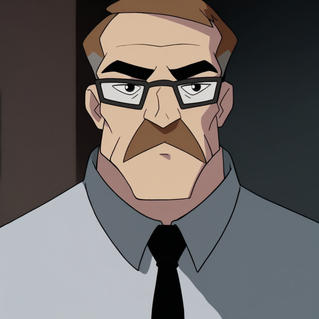 Commissioner James Gordon, Facial Hair, Mustache, Glasses, Brown Hair, Black Eyes