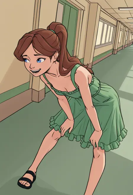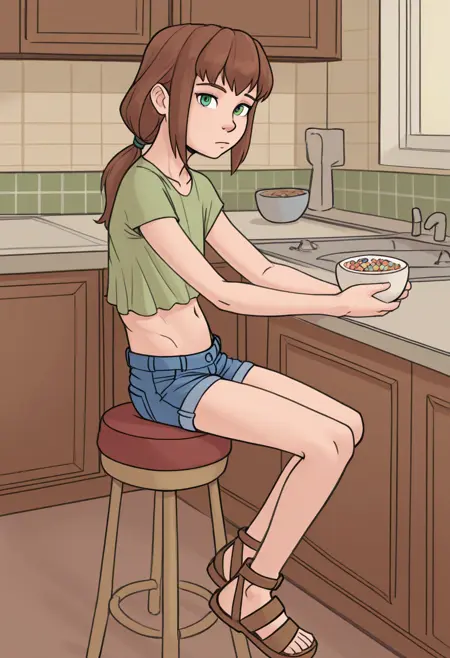 Katelyn 的妹妹: katelyn's sister,棕发,低马尾,绿眼,侧发,平胸