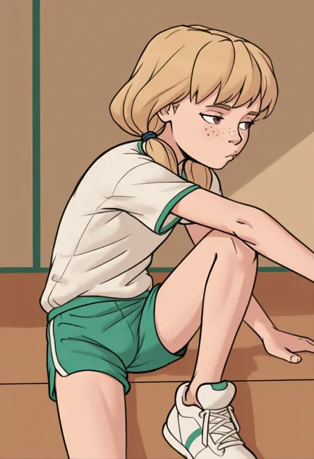 标注的服装提示词: 宽大衬衫,夹克系在腰间,宽松衣物,内衣透过衣物可见,裙底风光,运动文胸,体育馆制服,绿色短裤,海豚短裤,体育馆上衣,黄色连衣裙,红色连衣裙(更多请参考展示图)