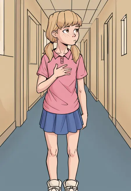 Erica 的朋友: erica's friend,低双马尾,雀斑,棕眼,金发,平胸