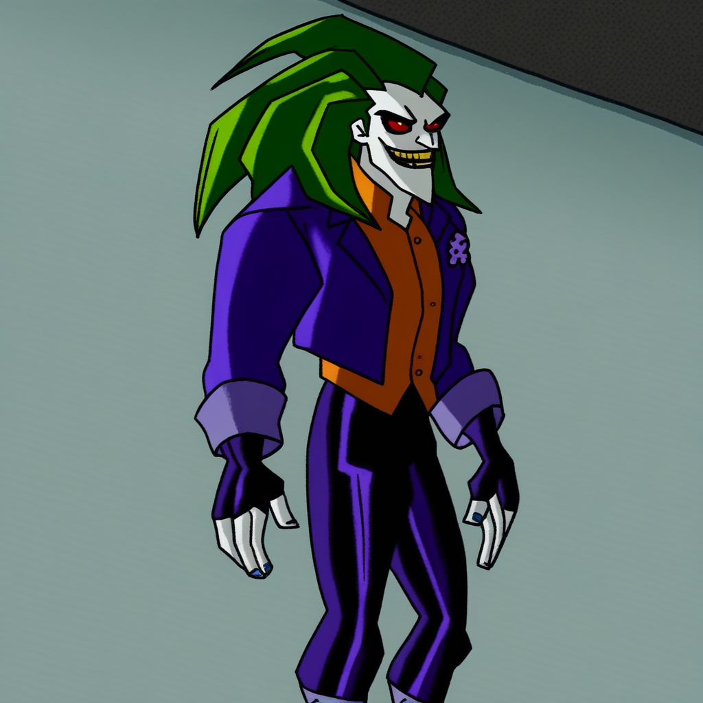 Joker, Red Eyes, Green Hair, White Skin, Colored Sclera, Yellow Teeth, Smile