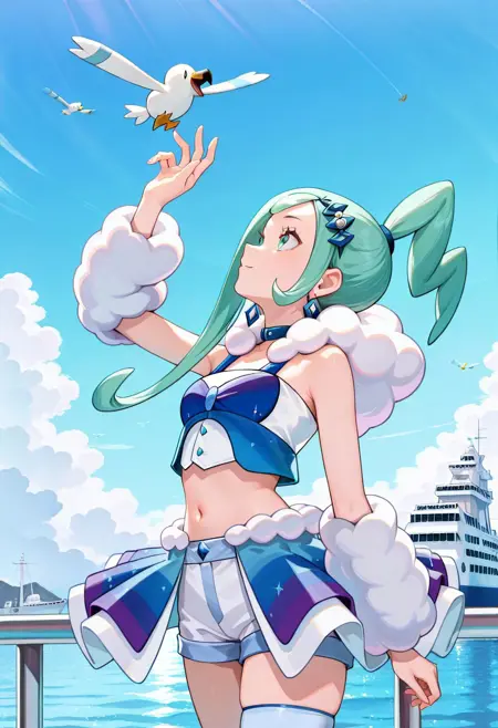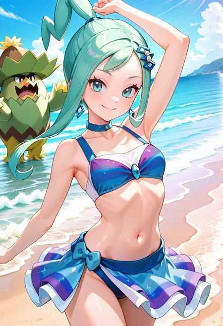 Lora for Lisia from Pokemon Omega Ruby and Alpha Sapphire. Use a weight of 1 to 0.8. RichyrichMix seems to work well enough for generating most Pokemon (you can see I tried to generate a Ludicolo in one of the images and it didn't come out so great though, lol).