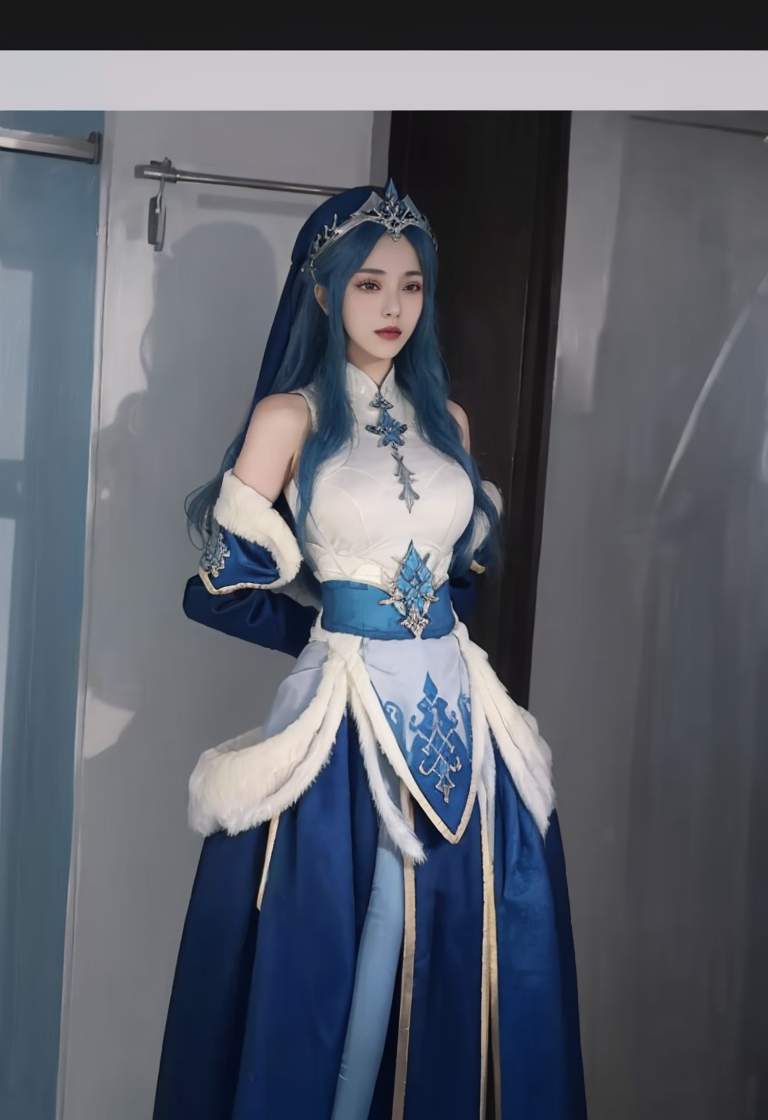 正面プロンプト推奨:1girl,solo,pale skin,perfect body,glossy skin,wzrywzjkiller,blue hair,gloves,standing,dress,gloves,long hair,bare shoulders,azura (fire emblem),(close-up photo),(upper_body),sense of reality,