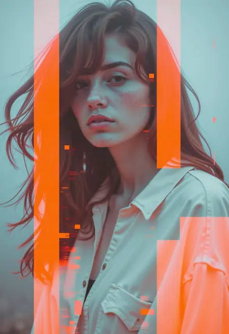 Trigger it with "neon-mist", then fuel the void with phrases like neon orange haze, atmospheric fog, digital corruption, washed-out background, desaturated world, bleached dystopia, monochromatic with vibrant orange neon pops, flickering neon fractures, and glitching light pulses.