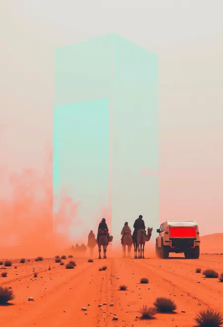 "neon-mist" 라고 입력하고, neon orange haze, atmospheric fog, digital corruption, washed-out background, desaturated world, bleached dystopia, monochromatic with vibrant orange neon pops, flickering neon fractures, glitching light pulses 같은 문장으로 공허를 채우세요.