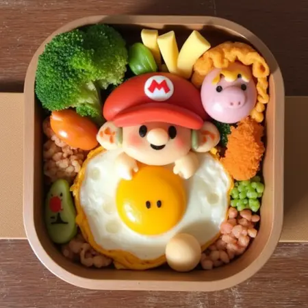 변형: 벤토 박스에 음식을 사진처럼 보여주는 창의적이고 예술적인 배열을 시도하세요. 박스 형식과 분리된 칸으로 구성되어 있습니다. 정확한 결과를 위해 가능한 한 상세히 설명하세요. 좋은 팁은 이 프롬프트를 끝에 추가하는 것입니다: "표현이 자연스럽고 장면 전체에 정확한 질감과 조명에 세심한 주의를 기울이세요), 정교한 수작업 페인팅 디테일, 초현실적인 질감, 수상 경력 있는 공예 || 스튜디오 리밍 조명, 생생하지만 긴장감 있는 색상, UHD 해상도, 풍부한 디테일, 수상 경력 있는, 인상적인 이미지, 드라마틱한 포즈"