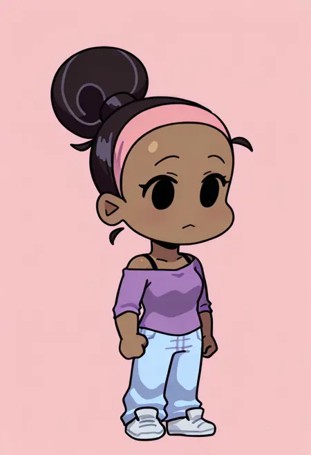 | 训练词汇 | MomiFNF, 1girl, dark skinned female, dark brown hair, purple shirt with black straps, blue jeans, silver shoes, light pink headband, black eyes, chibi, short,已复制! MomiFNF, 1girl, dark skinned female, dark brown hair, purple shirt with black straps, blue jeans, silver shoes, dark brown cat ears, dark brown cat tail, black eyes, chibi, short,已复制! |