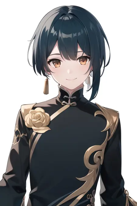 lora:xingqiu-000018:\*,((masterpiece,best quality)), dynamic angle, (beautiful delicate face:1.1),1boy,solo, light blue hair, fluffy medium-short hair, bangs,earrings, brown eyes, blue and black Military highschool dress,((school uniform))