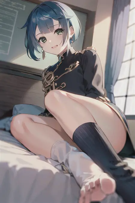 lora:xingqiu:0.5,masterpiece,best quality,official art,extremely detailed CG unity 8k wallpaper,1boy,solo,seductive smile, sitting_chair, ((masterpiece,best quality)), dynamic angle, (beautiful delicate face:1.1), solo,(1boy:1.3), masterpiece, best quality,