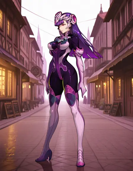 기본 프롬프트: 1girl, persephone, wa5, bodysuit, long hair, purple hair, red eyes,