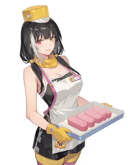 SakuraMilkshake, SM_camisole, SM_apron, SM_shorts,SM_hat, SM_knee_boots, SM_gloves, SM_thighhighs, SM_bag
