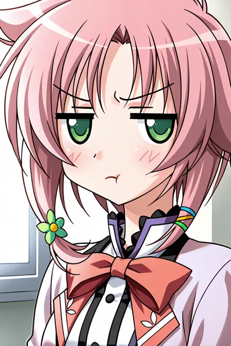 blush, >:, closed mouth, looking at viewer, upper body, v-shaped eyebrows, angry, facing viewer