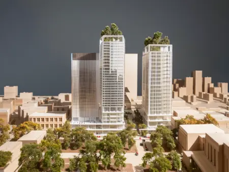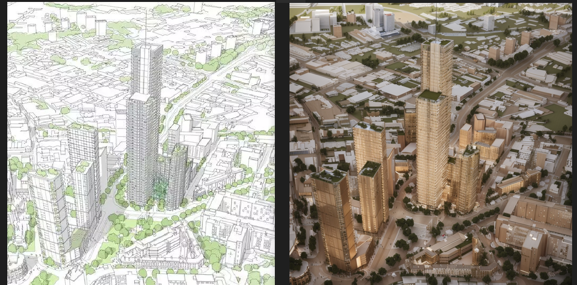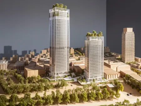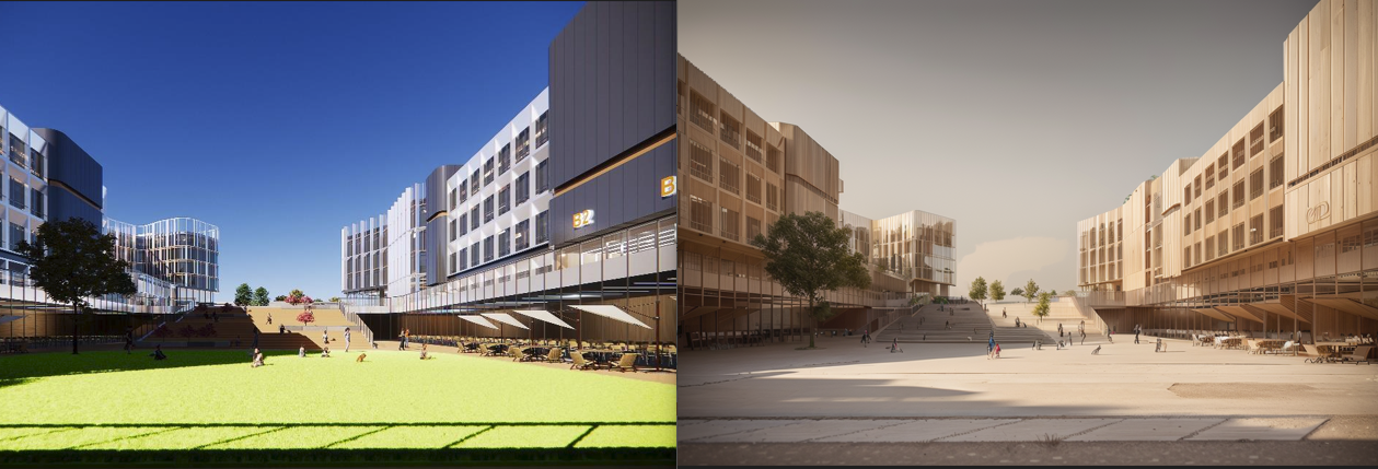 모델: chillout, 프롬프트: JZCG027(필수), 건물, 도시, 나무, 타워 등