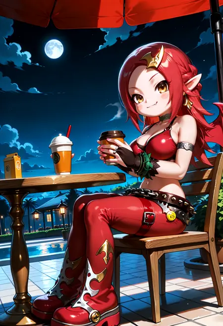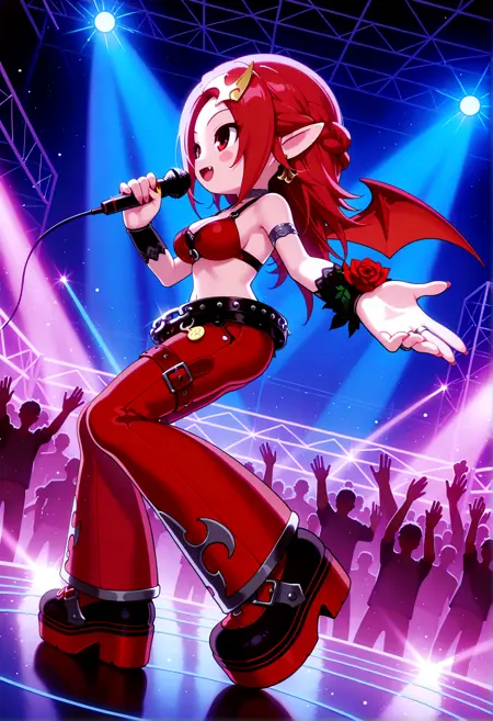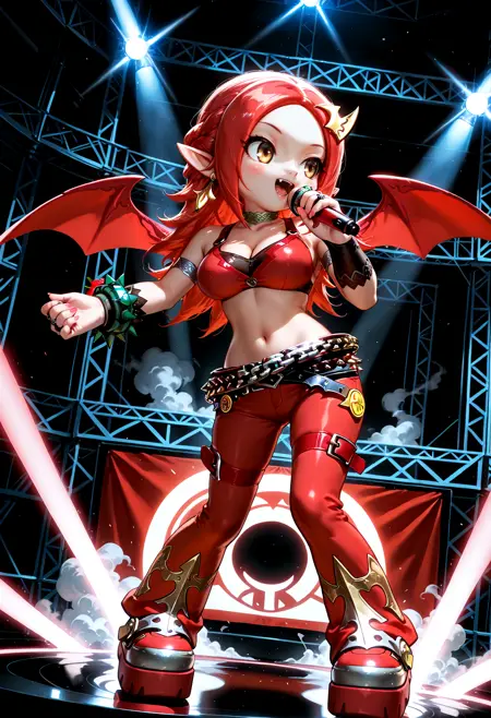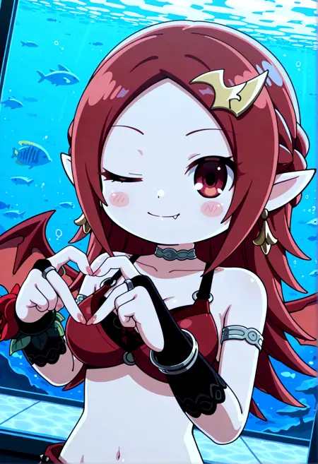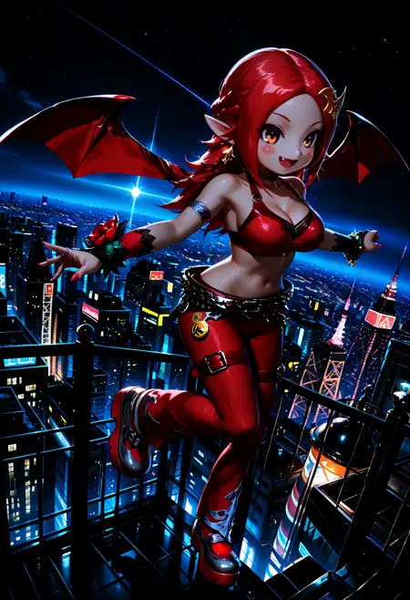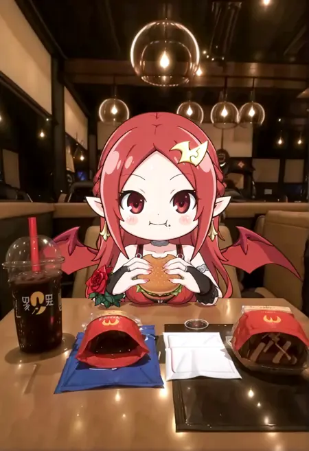 NADJASHAKE3, 빨간 머리, 속눈썹, 날카로운 이, 뺨 스티커, 귀여움, 치비, 큰 가슴, 박쥐 날개, 분홍색 긴 손톱,