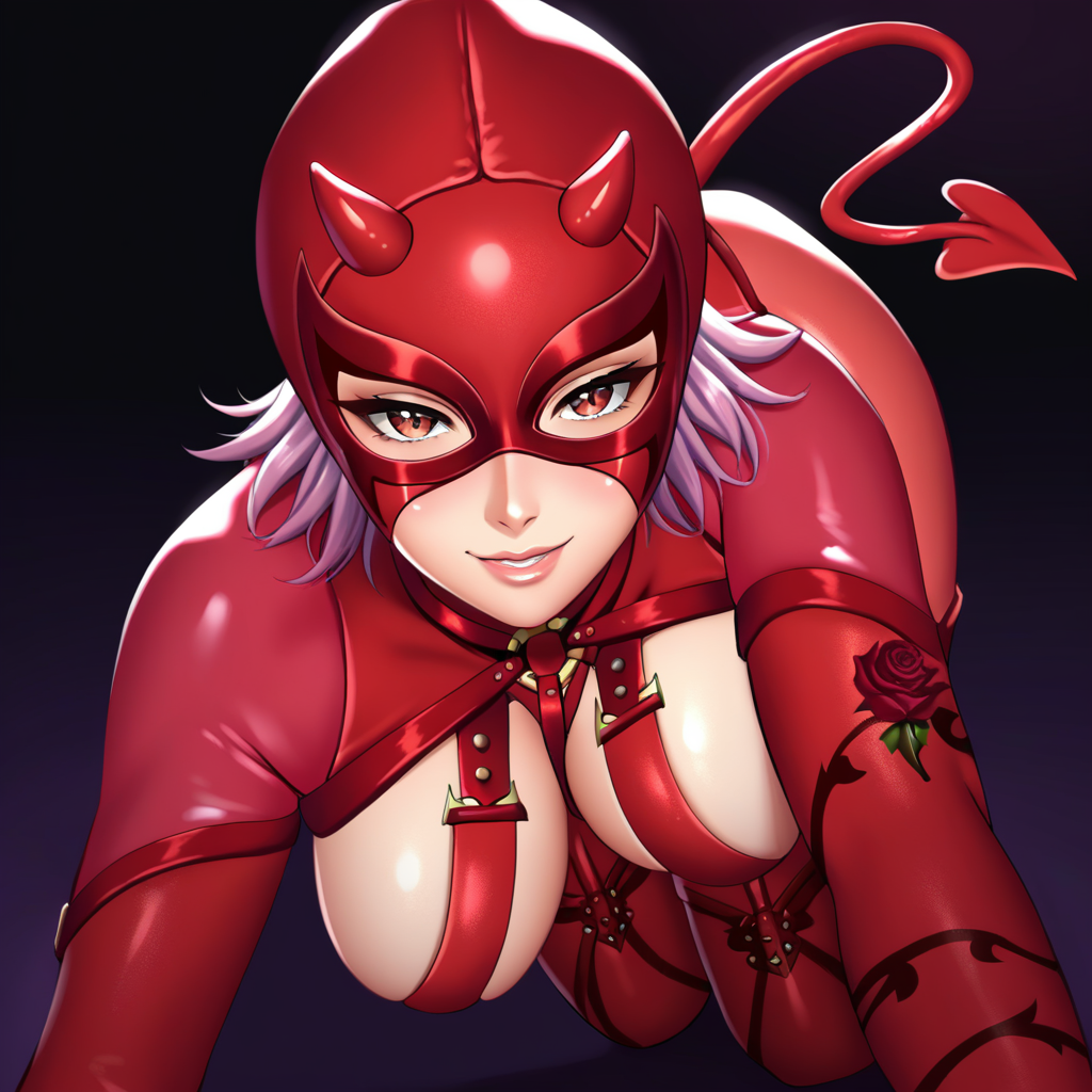 | トレーニングワード | RRXX_Evil_Rose, 1girl, solo, brown eyes, large breasts, mask, horns, red leotard, bodysuit, gloves, thighhighs, red thighhighs, thigh boots, high heel boots, demon tailコピーしました! RRXX_Evil_RoseSS, 1girl, solo, colored skin, green skin, scales, tail, alien, mask, string harness, black metallic corset, bare shoulders, cleavage, fishnets, thighhighs, elbow gloves, thigh bootsコピーしました! |