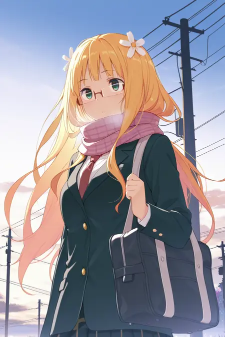 학교 교복을 입은 미츠키의 예시 프롬프트: