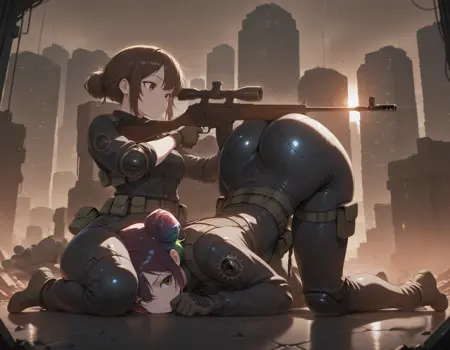 1girl with rifle(可指定枪支类型,例如:狙击步枪、突击步枪等)