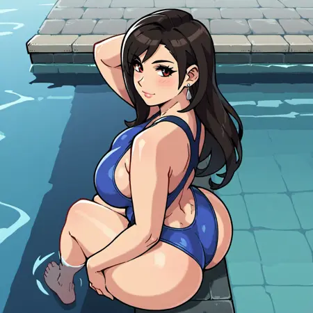 이 모델은 제대로 작동하기 위해 여러 개의 캡션을 필요로 합니다. 하지만 pool이 가장 중요한 트리거 단어입니다. from above, sitting, ass도 거의 그만큼 중요합니다. hand on thigh, arm up은 팔의 위치를 제어하며, 의도한 포즈를 구현하기 위해 필수적입니다. 따라서 의도한 포즈를 위한 권장 최소 캡션은 다음과 같습니다: pool, from above, sitting, ass, hand on thigh, arm up