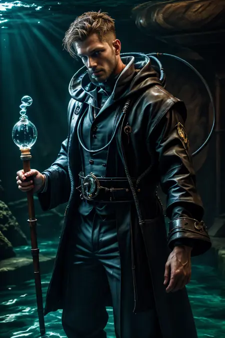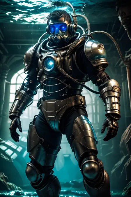 一套受OceanPunk美学和《生化奇兵》视频游戏系列启发的服装与盔甲。它带有一些复古感,因此还不够未来主义,不足以被称为OceanPunk,故命名为“Hydro”。