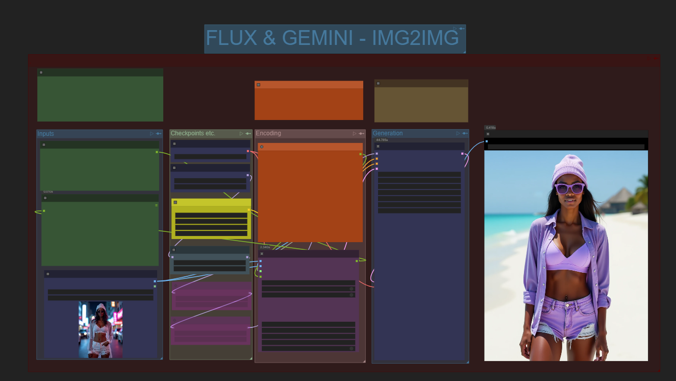 Change outfit, settings and more easily with Flux image to image, and prompt help from Gemini 2.0 Flash.