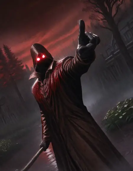 Prompt Example: 1boy, dp_killer, solo, {{very glowing eyes}}, coat, rain, <lora:Deadly_Premonition_raincoat_killer:1> blood on coat, Gesture of denial , glowing , glove, Dutch angle, bust body, corpses around, red sky, fog, dynamic pose, surrealism, red tree, gesture pointing, close-up, holding wood Axe,