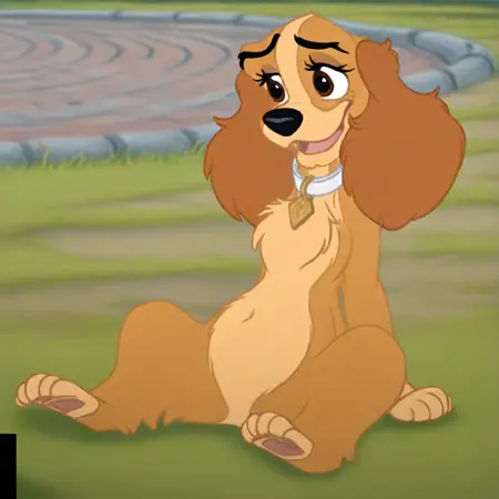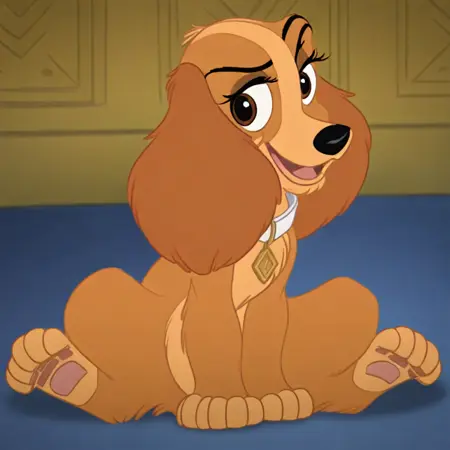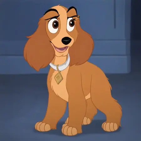 danielle, disney, dog, cocker spaniel, white collar, long brown ears, tan fur, light tan belly, light tan paws, brown eyes, cocker spaniel, female, full body, solo