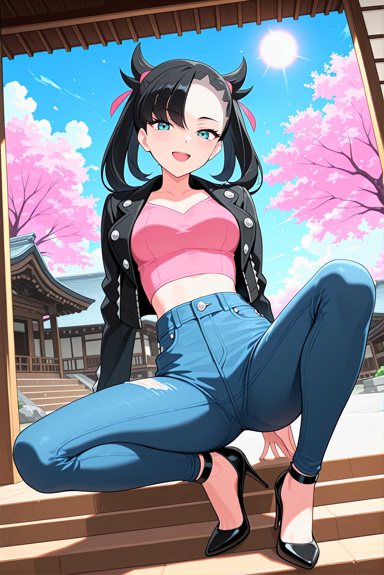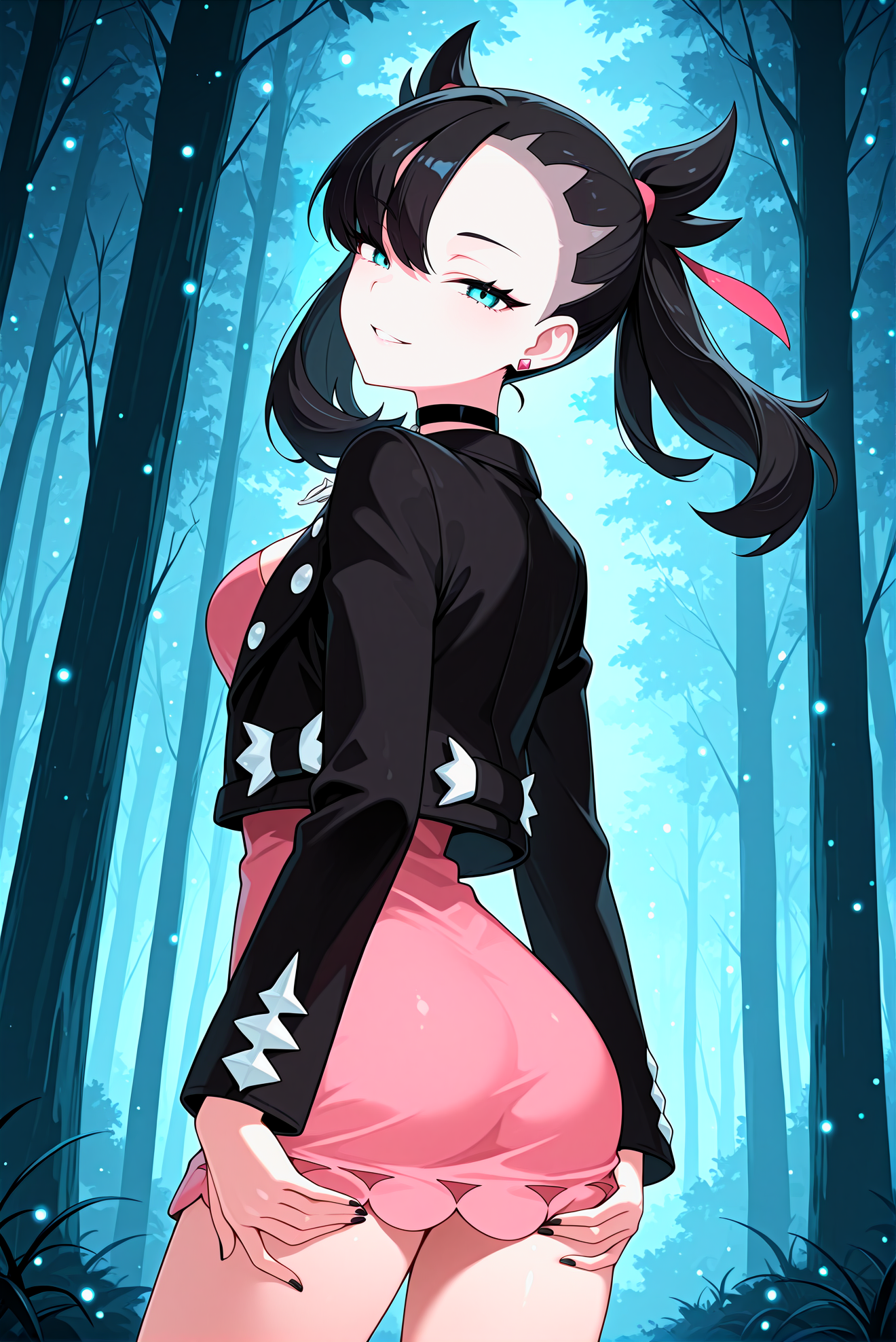 ベースプロンプト:m4rn13、黒髪、前髪、ツインテール、非対称前髪、髪リボン