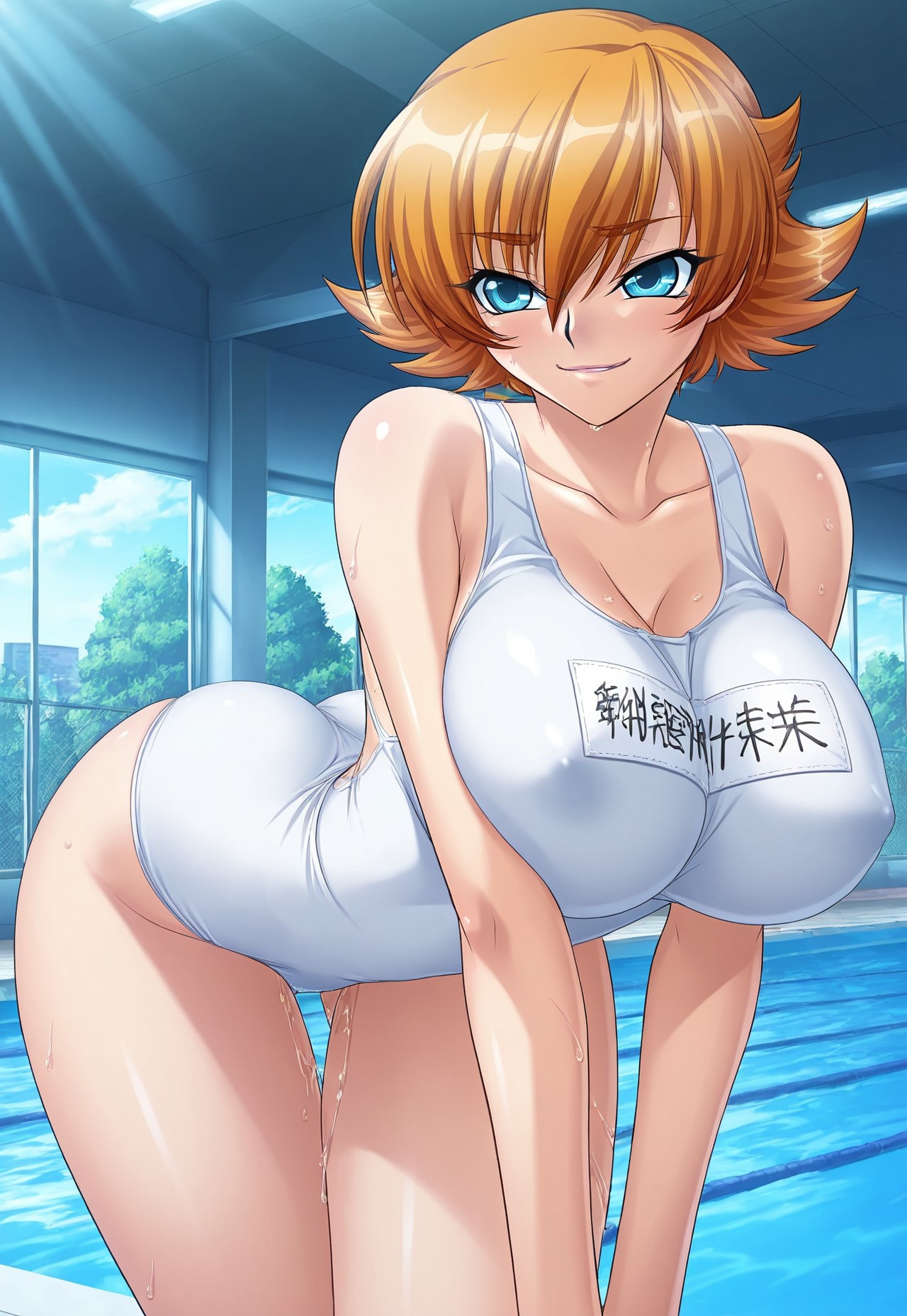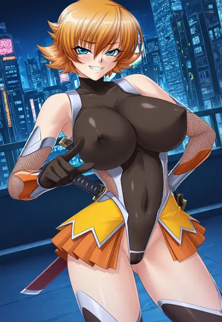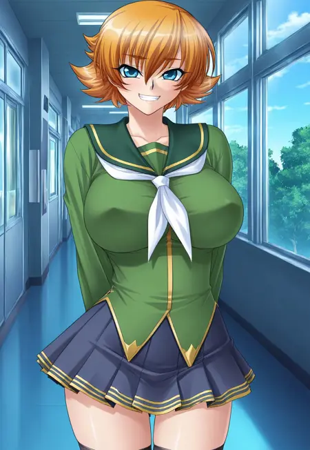Tags: igawa sakura, orange hair, short hair,, bangs, flipped hair, blue eyes, large breasts, curvy, sexy