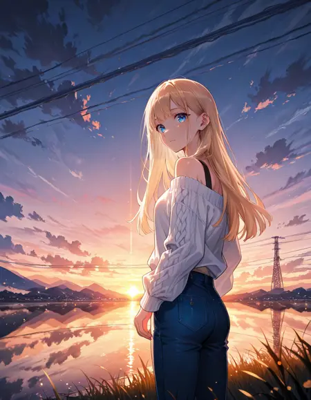 scenery, outdoors, city, cityscape, building, house, reflection, day, sky, cloud, mountain, blue sky, landscape, grass, field, mountainous horizon, tree, river, train station, ground vehicle, forest, road, rice field, flooded rice field, sunset, evening, nature, sign, power lines, utility pole, car, street, town, mount fuji, factory, chimney,