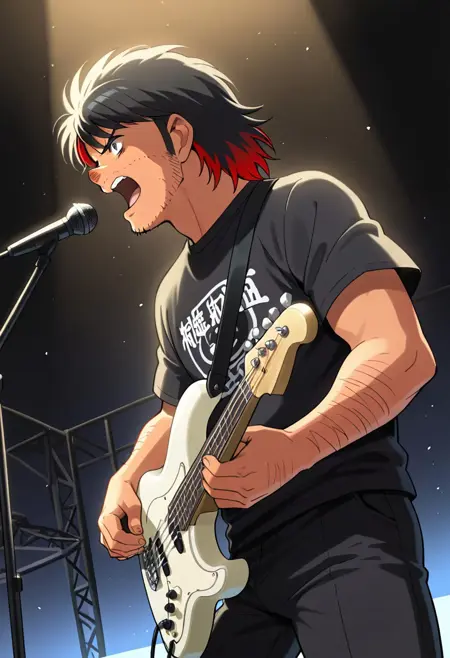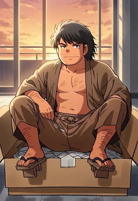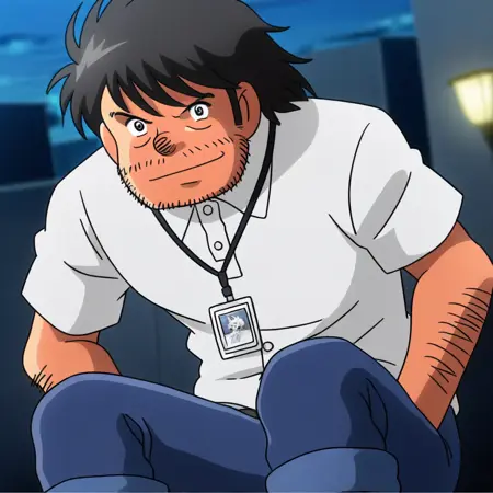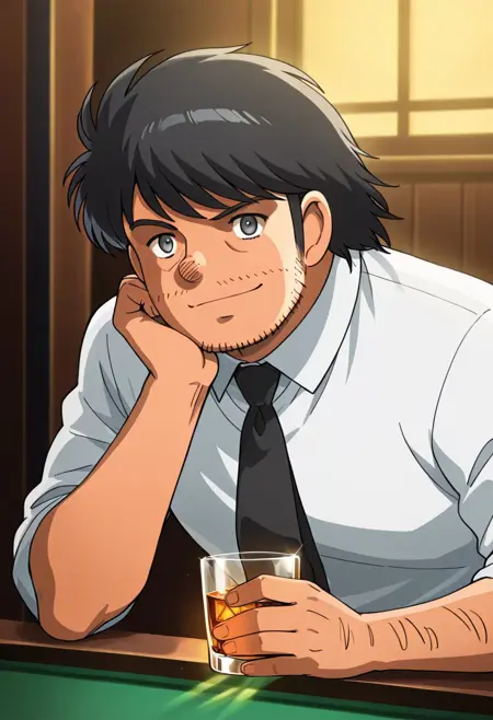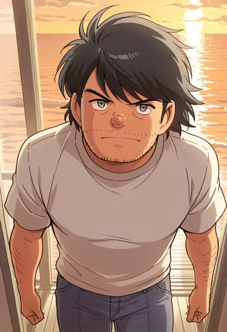 (( lora:kira\_kozo:1 , kira_kozo, 尖锐的深灰色眼睛,清澈的眼睛,友善的眼睛,眼下有皱纹,短小圆润的身材,略微圆润的脸,胖但强壮的男性,令人反感的多毛男性,圆润的酒糟鼻,皮肤微晒,凌乱的短黑发,凌乱的短刘海,短络腮胡,阴森的男性,缺乏魅力的男性))