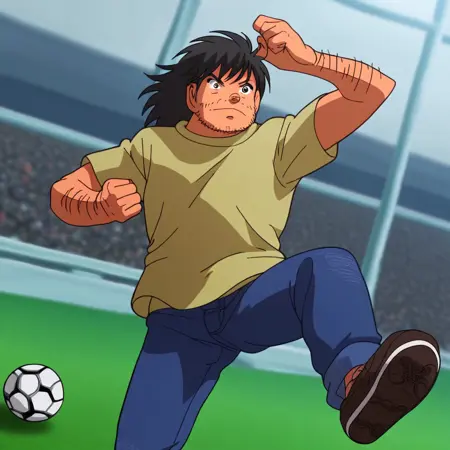 (( lora:kira\_kozo:1 , kira_kozo, piercing dark grey eyes, clear eyes, friendly eyes, wrinkle under eyes, short chubby body, slightly chubby face, fat but strong male, disgusting hairy male, round alcoholic nose, very lightly tanned skin, messy short black hair, messy short bangs, short stubble beard, creepy male, uncharismatic male, ))