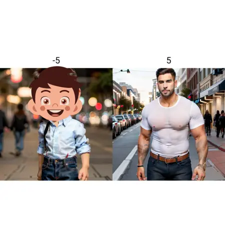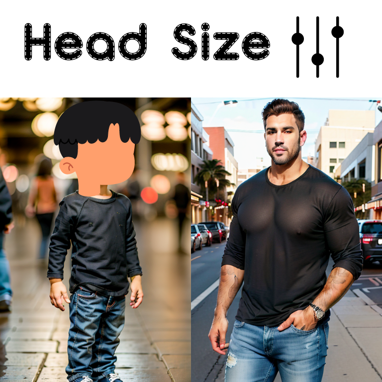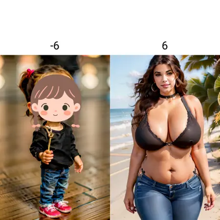 此模型在自定义合并模型上训练而成,从 大头娃娃 中提取了负向概念,而“大头”的另一面是“大身体”,并结合其他提示以强化正向概念(我不确定这是否明显,但我无法使用“小头”来激发正向概念,因为其子字符串中包含“头”,反而会生成比正常更大的头)。