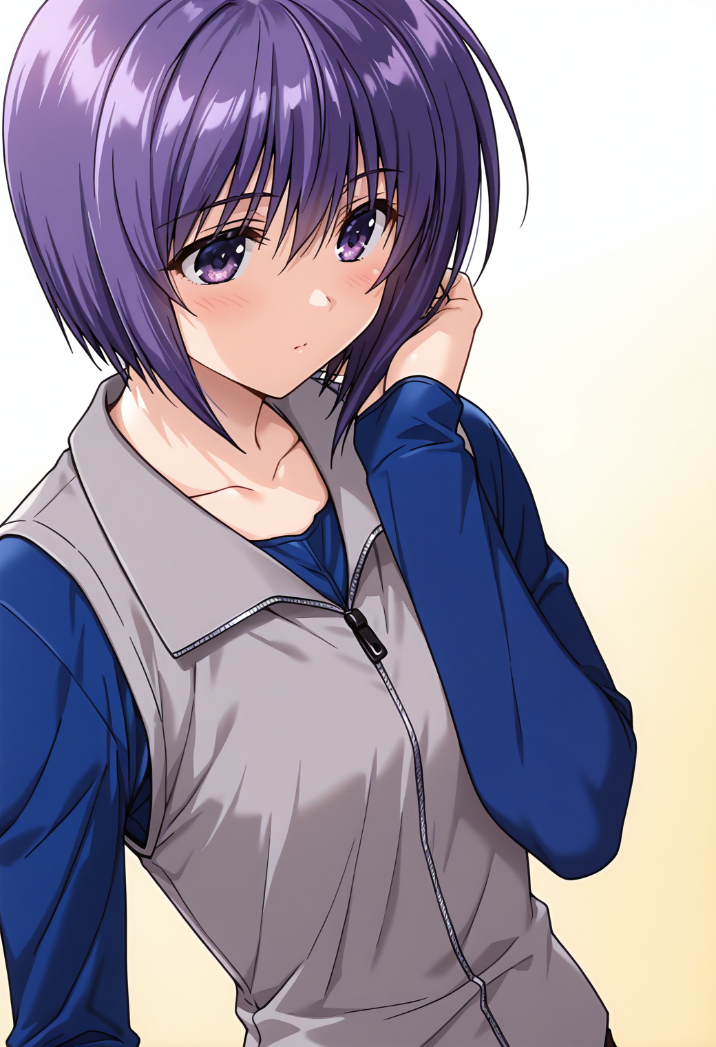 haga_reiko, reiko_casual2, purple hair, short hair, purple eyes, breasts,