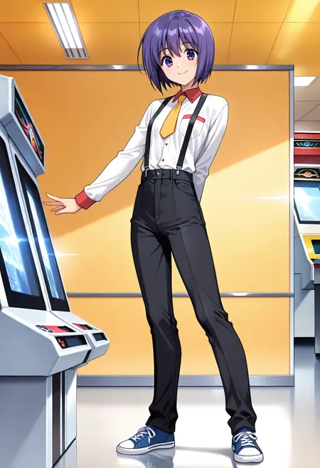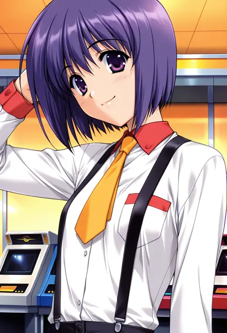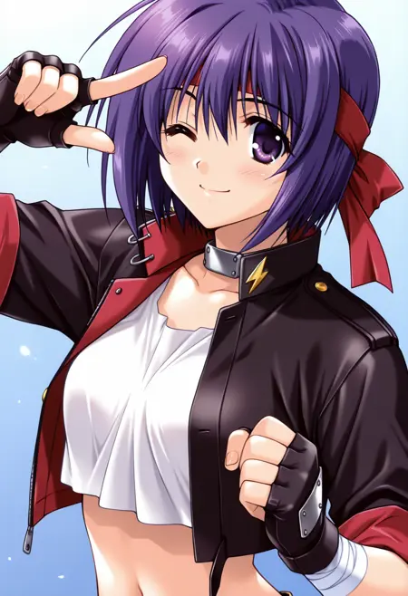 haga_reiko, reiko_arcade, purple hair, short hair, purple eyes, breasts,