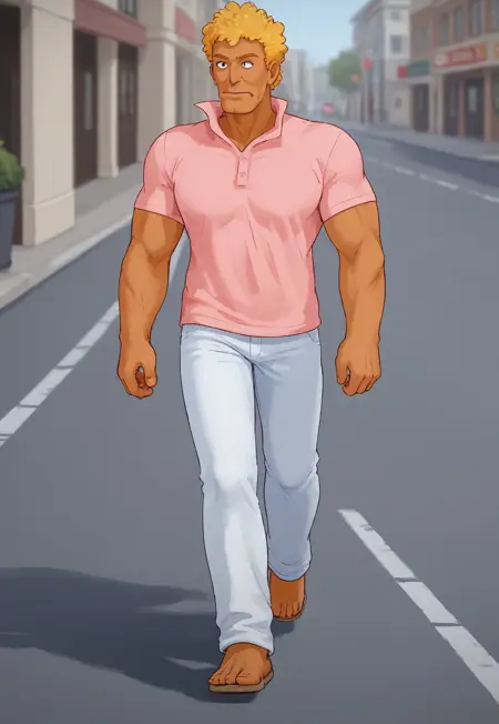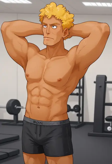 Brody fox, Blonde hair, curly hair, tan skin, male, very muscular,