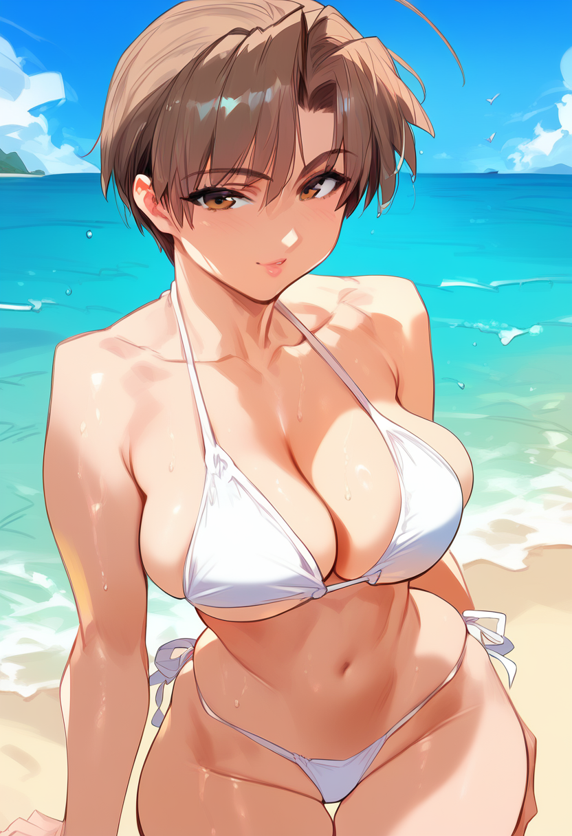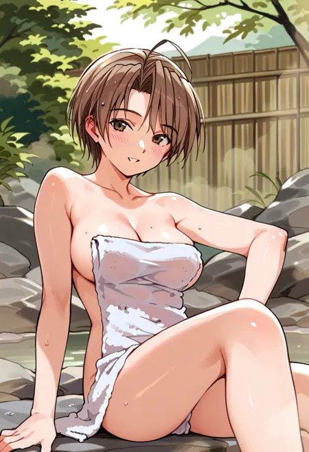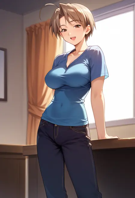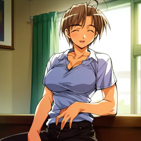 Trigger: konno_mitsune, short hair, brown hair female, ahoge,