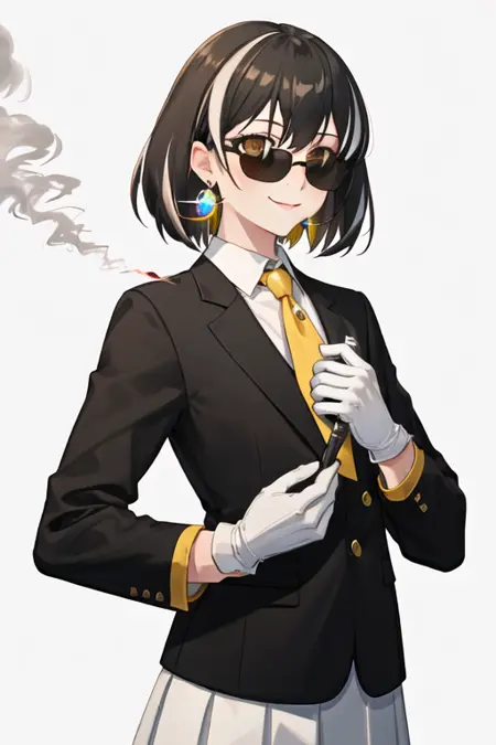 - The pruned character tags are multicolored hair, streaked hair, white hair, short hair, brown hair, yellow eyes, earrings, two-tone hair, hair between eyes, breasts. You can add them into prompts when core features (e.g. hair color) of character is not so stable.