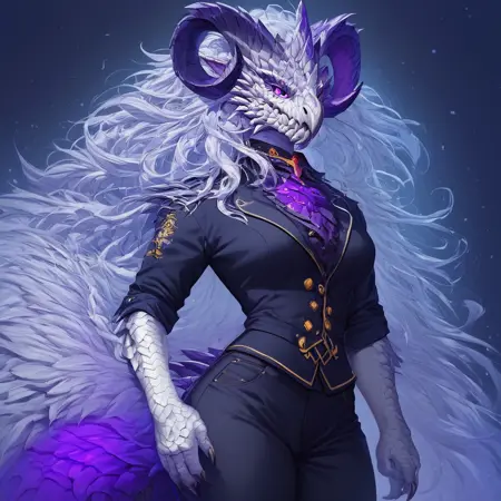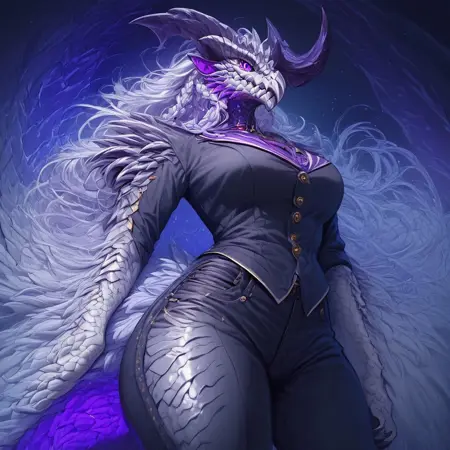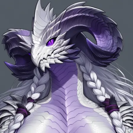 Arkveld,怪物,角,龙,乳房,长发,尾巴,发辫,爪子,白发,彩色皮肤,毛茸茸的女性,白眼,蓝白巩膜